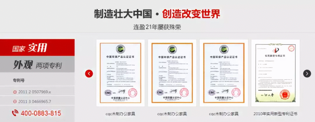 最後(hòu)借助多項家具專業領域的國(guó)家專利的技術背書,讓目标客戶感受到連盈家具的技術保障,進(jìn)一步說(shuō)道(dào)目标客戶心坎去!
